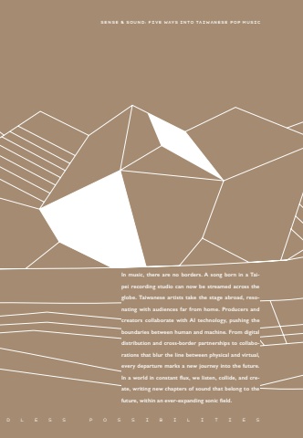 In music, there are no borders. A song born in a Taipei recording studio can now be streamed across the globe. Taiwanese artists take the stage abroad, resonating with audiences far from home. Producers and creators collaborate with AI technology, pushing the boundaries between human and machine. From digital distribution and cross-border partnerships to collaborations that blur the line between physical and virtual, every departure marks a new journey into the future. In a world in constant flux, we listen, collide, and create, writing new chapters of sound that belong to the future, within an ever-expanding sonic field.Sense & Sound: Five Ways into Taiwanese Pop Music