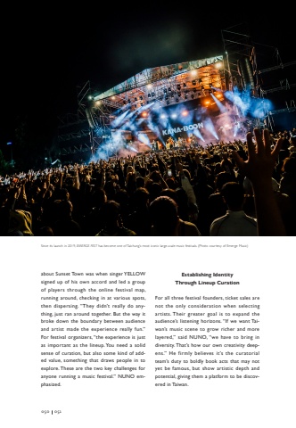 about Sunset Town was when singer YELLOW signed up of his own accord and led a group of players through the online festival map, running around, checking in at various spots, then dispersing. %u201cThey didn%u2019t really do anything, just ran around together. But the way it broke down the boundary between audience and artist made the experience really fun.%u201d For festival organizers, %u201cthe experience is just as important as the lineup. You need a solid sense of curation, but also some kind of added value, something that draws people in to explore. These are the two key challenges for anyone running a music festival.%u201d NUNO emphasized.Establishing Identity Through Lineup CurationFor all three festival founders, ticket sales are not the only consideration when selecting artists. Their greater goal is to expand the audience%u2019s listening horizons. %u201cIf we want Taiwan%u2019s music scene to grow richer and more layered,%u201d said NUNO, %u201cwe have to bring in diversity. That%u2019s how our own creativity deepens.%u201d He firmly believes it%u2019s the curatorial team%u2019s duty to boldly book acts that may not yet be famous, but show artistic depth and potential, giving them a platform to be discovered in Taiwan.050051Since its launch in 2019, EMERGE FEST has become one of Taichung%u2019s most iconic large-scale music festivals. (Photo courtesy of Emerge Music)