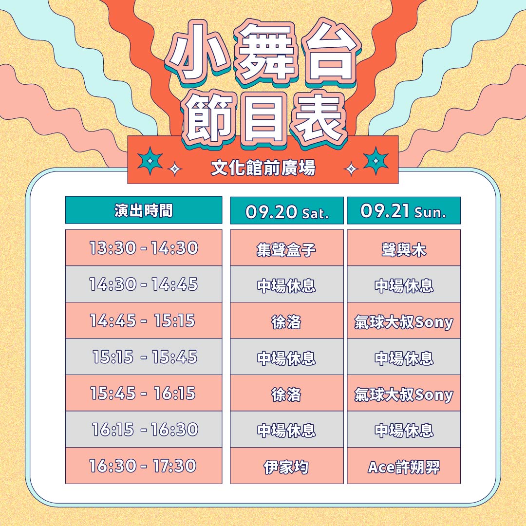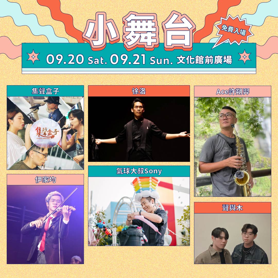 ▎文化館前廣場 小舞台演出:集聲盒子、聲與木、氣球大叔Sony、魔術師徐洛、伊家均(小提琴)、Ace(薩克斯風)。