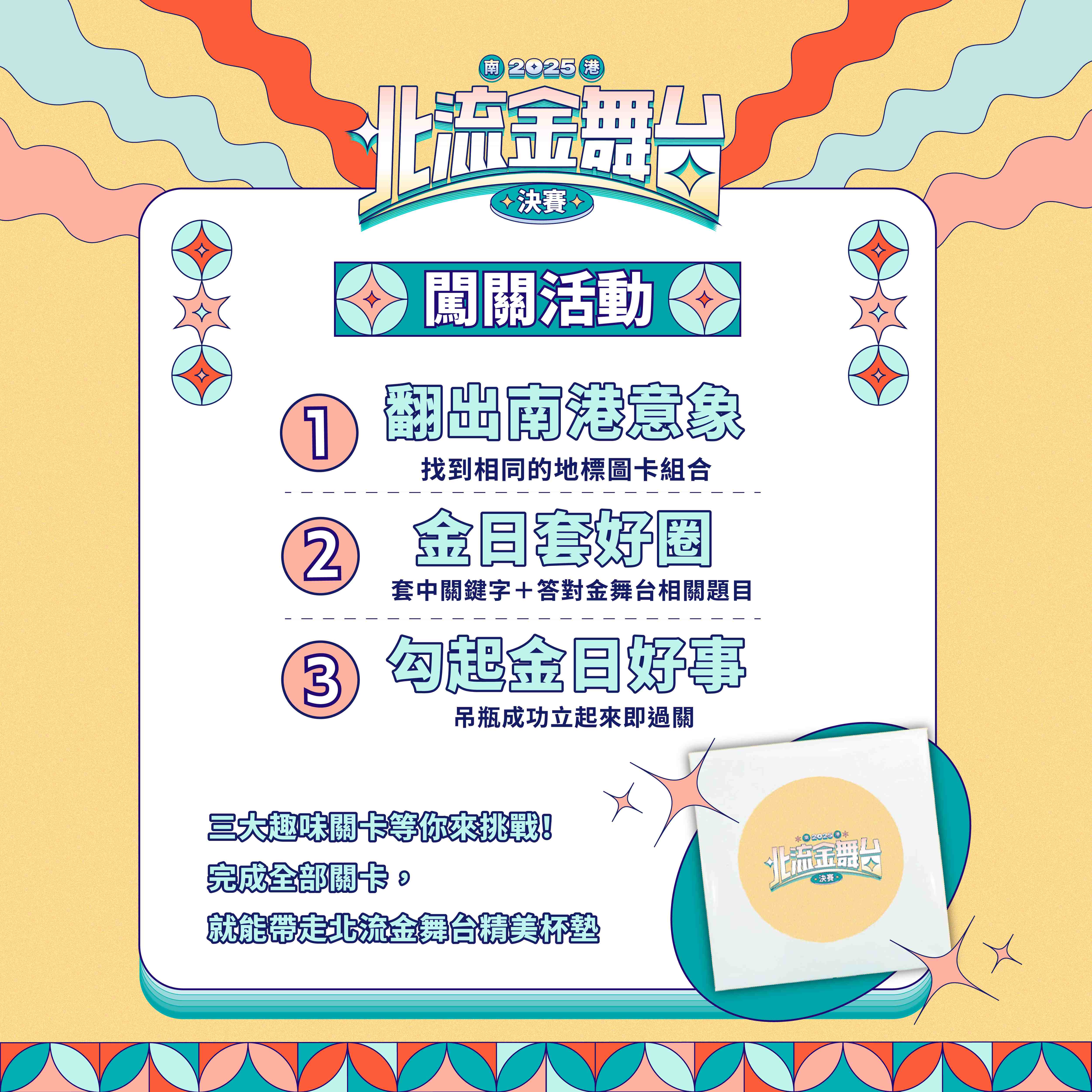 ▎闖關遊戲:翻出南港意象、金日套好圈、勾起金日好事。完成3個關卡闖關可獲得北流金舞台精美紀念品!