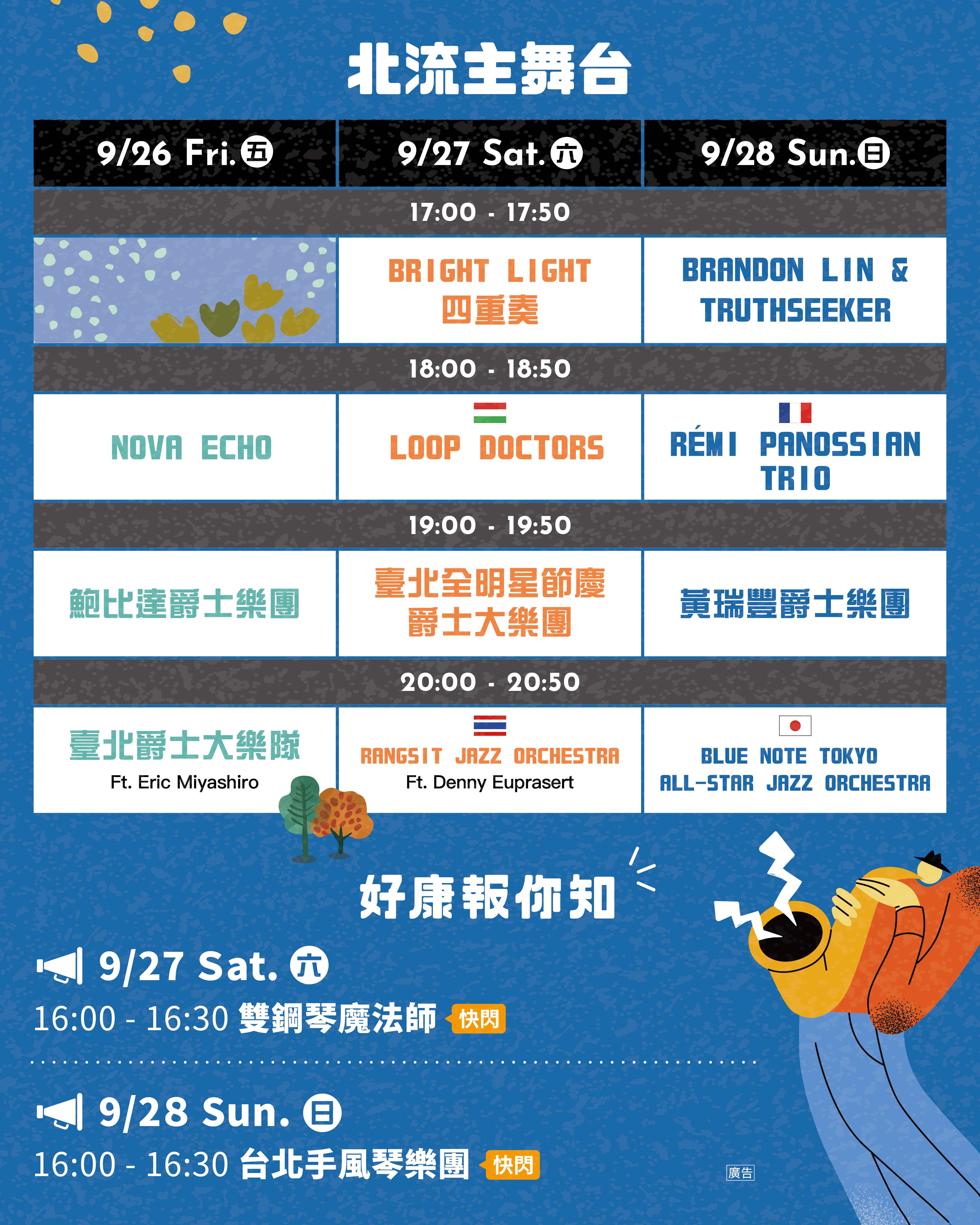 註:以上活動資訊如有更動,請以臺北爵士音樂節粉絲專頁公告為準。
